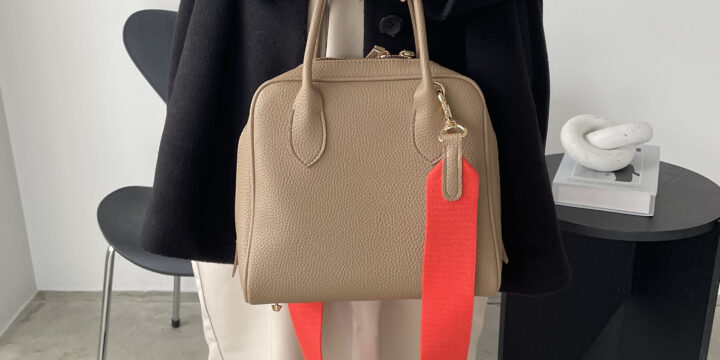 配色のショルダー紐がポイントの使い勝手の良いボストン型バッグショルダーハンド2WAYで、オケージョンや特別な日のコーディネートに合わせるのもオススメ。